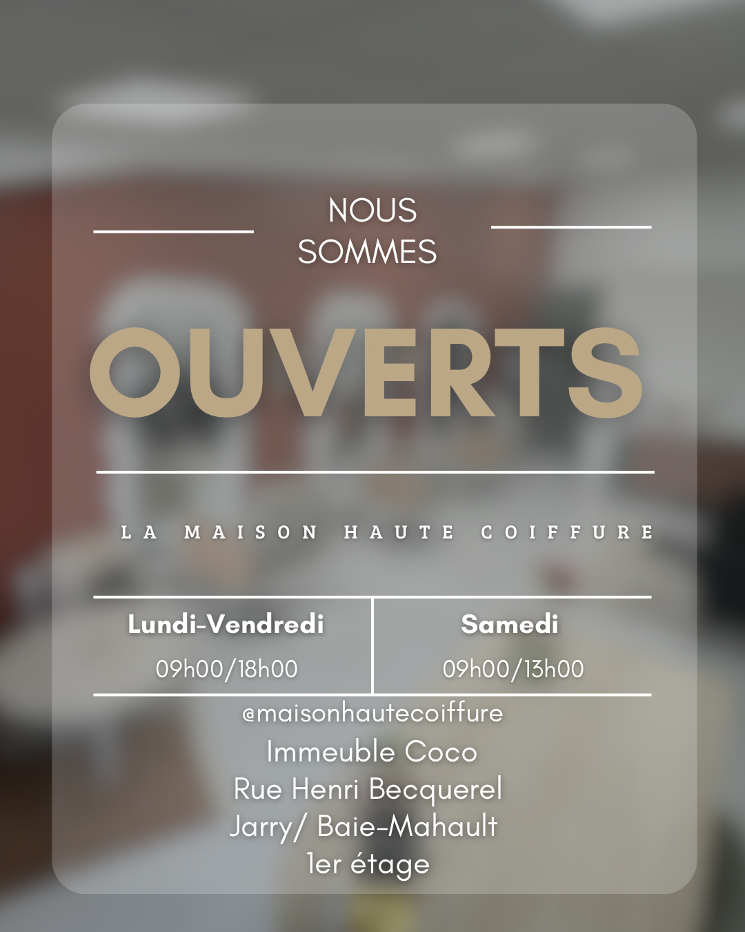 Née d’une passion profonde pour l’art capillaire, Maison Haute Coiffure est bien plus qu’un salon : c’est un espace où l’élégance rencontre le bien-être. Installée au cœur de Jarry, en Guadeloupe, la Maison a été imaginée pour offrir une expérience raffinée, chaleureuse et résolument moderne. Fondée par une professionnelle exigeante et passionnée, Maison Haute Coiffure s’inspire des codes des maisons de beauté haut de gamme : accueil irréprochable, écoute attentive, gestes maîtrisés et savoir-faire soigné. Chaque prestation — coupe, brushing, coloration, balayage, lissage, soin ou transformation — est pensée comme un rituel sur-mesure, destiné à révéler la beauté et la personnalité de chaque client(e). Dans une ambiance cocooning, douce et bohème, le salon met un point d’honneur à créer un moment de détente absolu : boissons offertes, musique apaisante, conseils personnalisés, et une attention portée aux moindres détails. Maison Haute Coiffure s’adresse aux femmes qui recherchent qualité, finesse, modernité et confiance, avec des techniques professionnelles et des produits rigoureusement sélectionnés. Ici, chaque visite devient une expérience unique, où l’on repart transformé(e), sublimé(e) et sûr(e) de soi. Maison Haute Coiffure : l’élégance comme signature, l’excellence comme promesse.